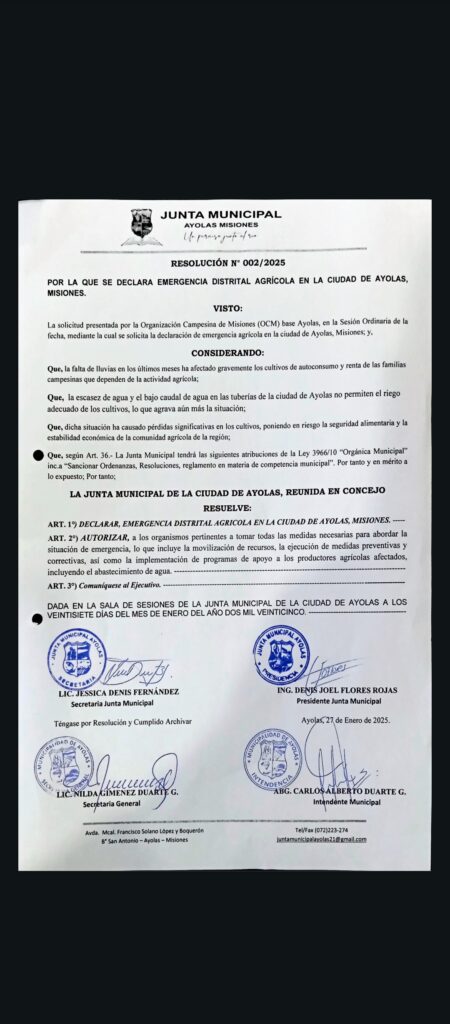 Declaran emergencia agrícola en Ayolas